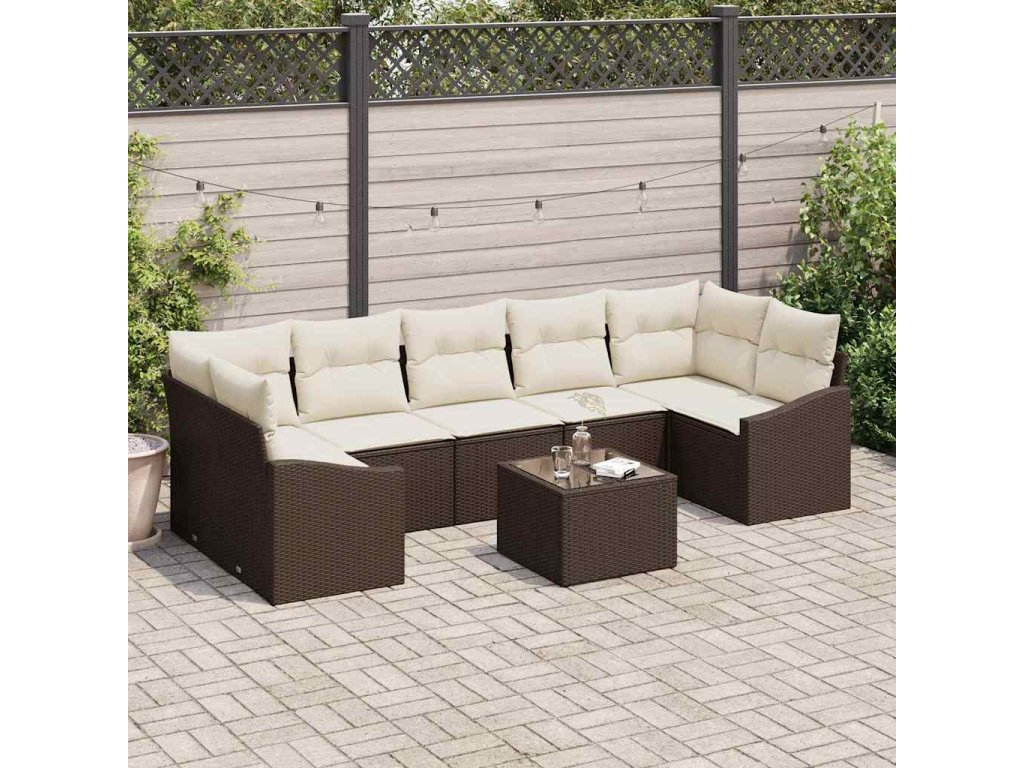 Sada pohoviek s vankúšom 8 pcs Hnedá a smotanová polyratan 3355307