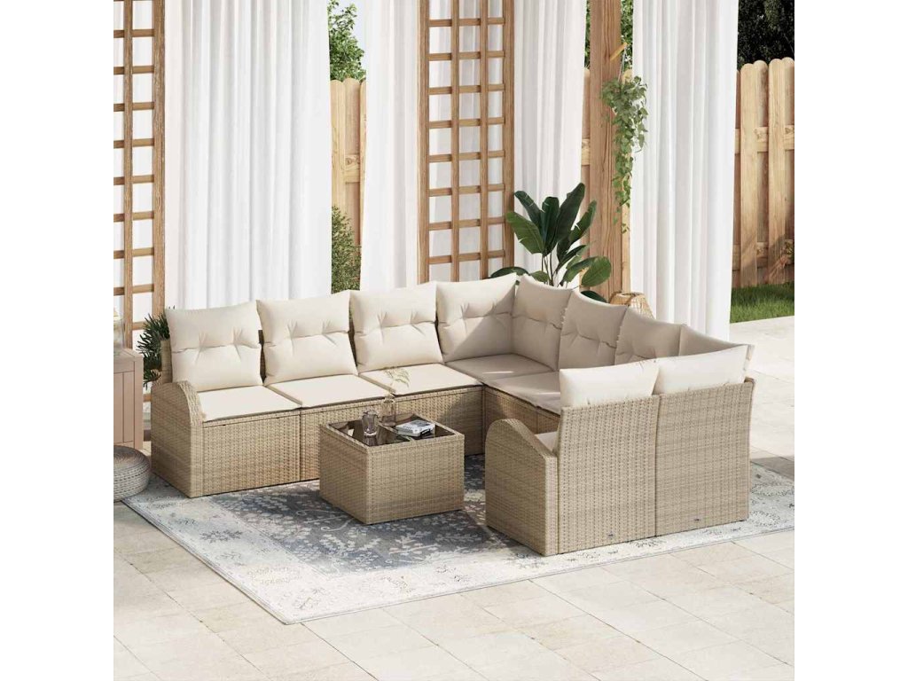 Sada pohoviek s vankúšom 9 pcs Béžová a krémová polyratan 3354650