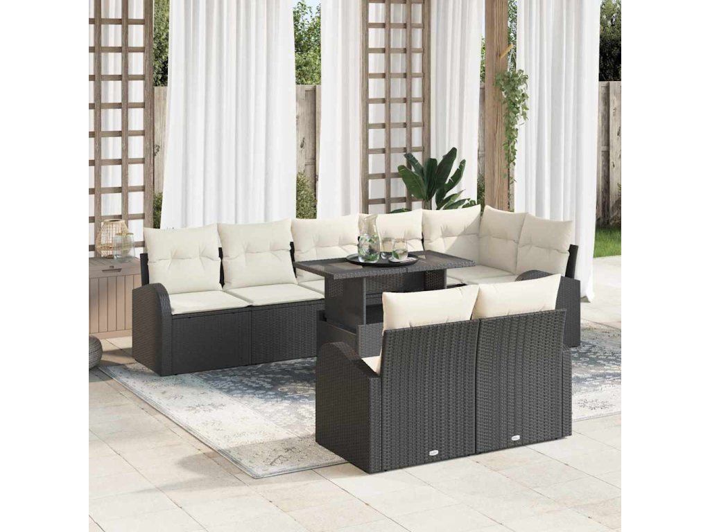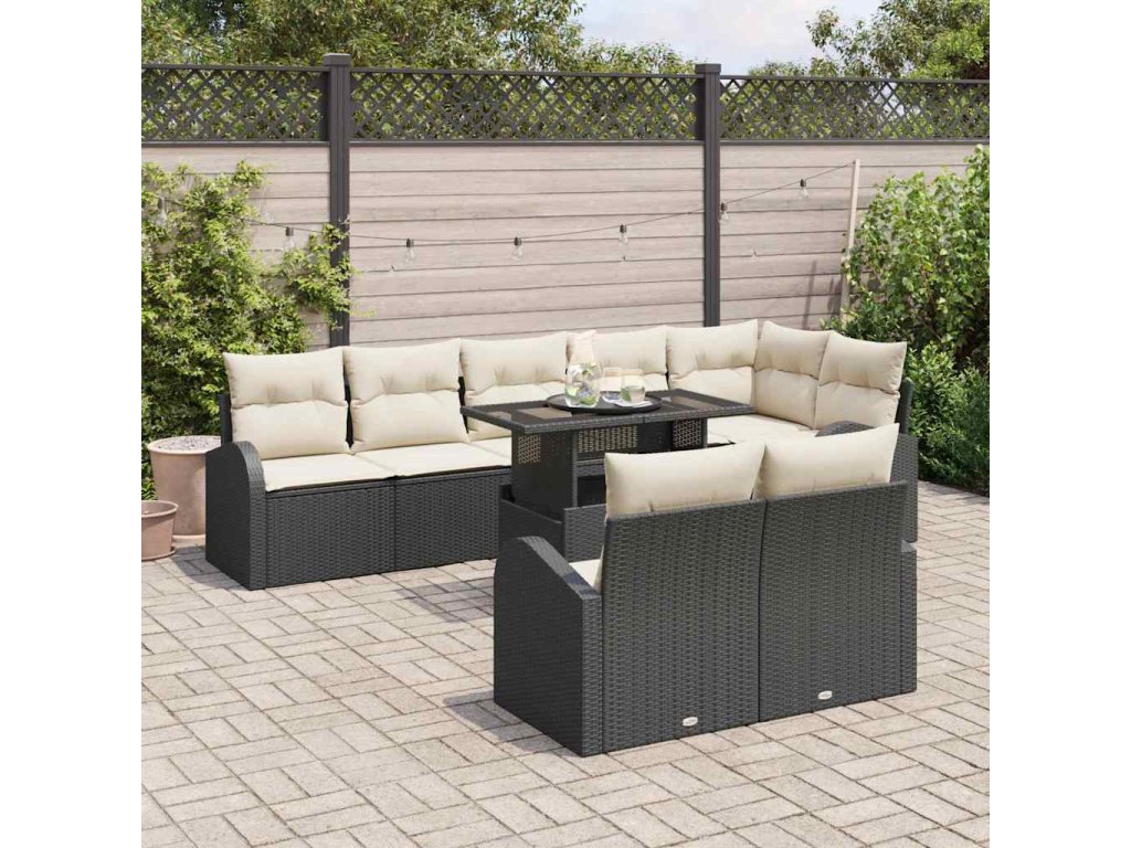 Sada pohoviek s vankúšom 9 pcs Čierna a krémová polyratan 3348663