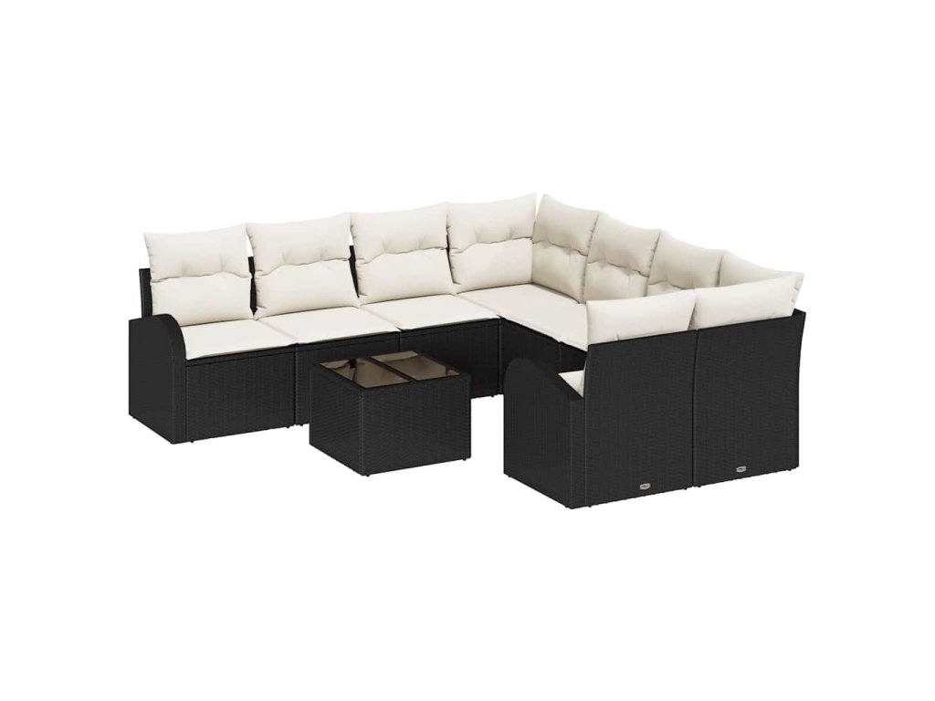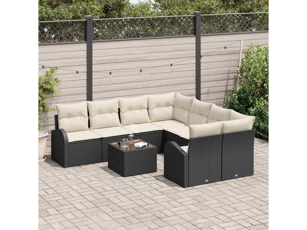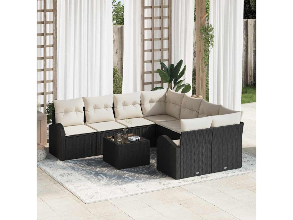 Sada pohoviek s vankúšom 9 pcs Čierna a krémová polyratan 3354646