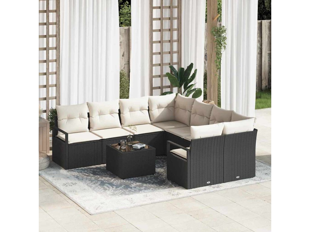 Sada pohoviek s vankúšom 9 pcs Čierna a krémová polyratan 3354986
