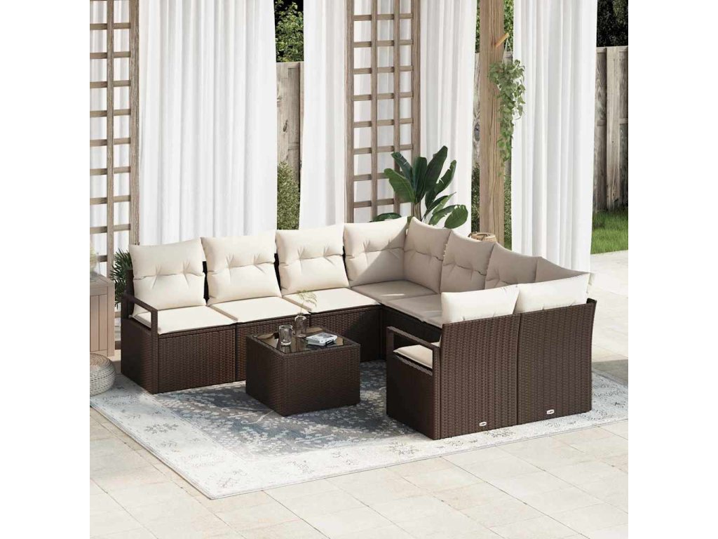 Sada pohoviek s vankúšom 9 pcs Hnedá a smotanová polyratan 3354987