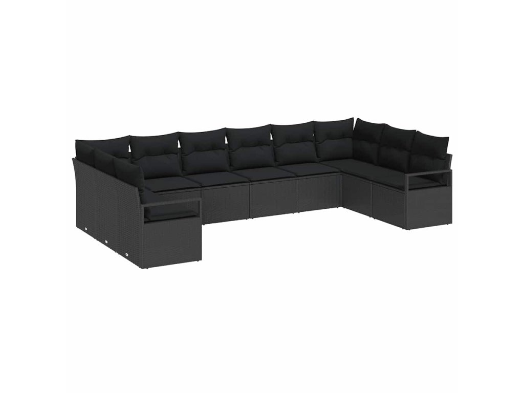Sada pohoviek s vankúšom s úložiskom 10 pcs Čierna polyratan 3355232