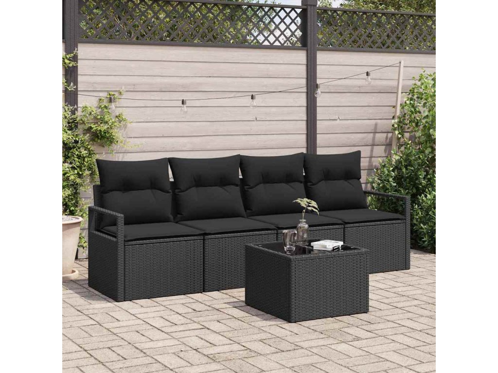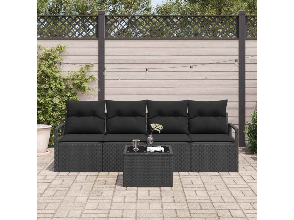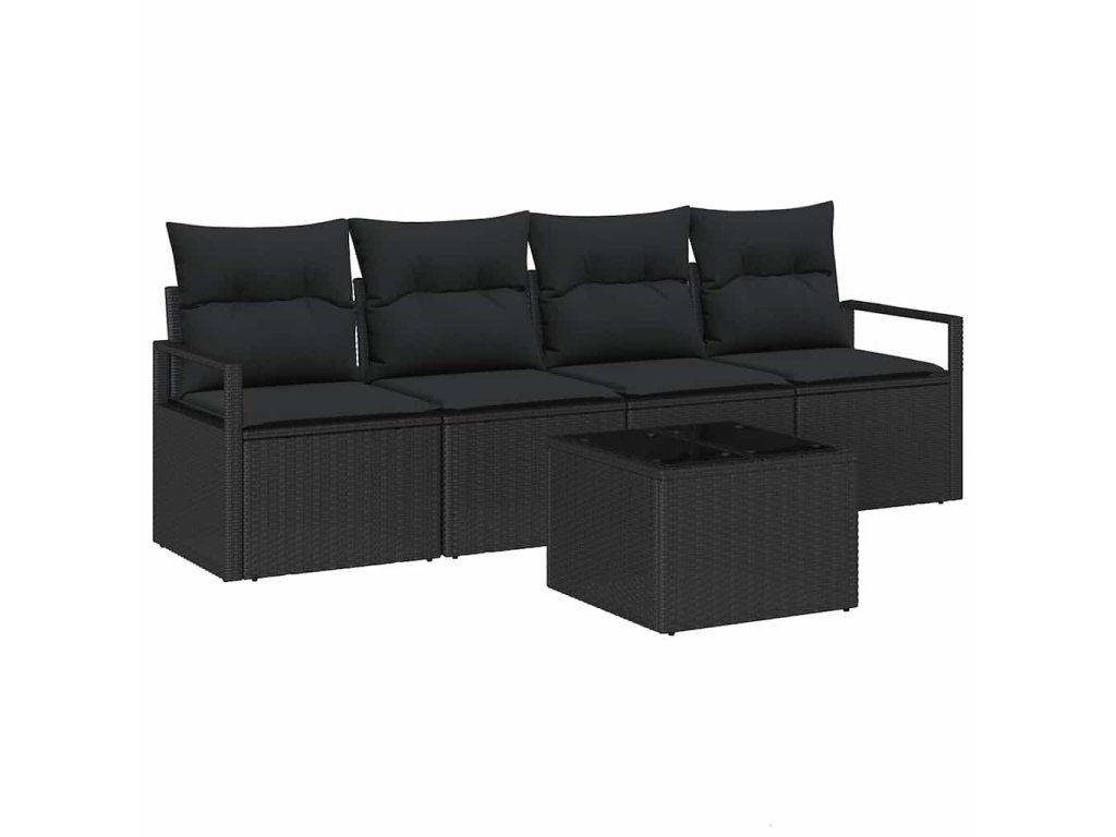 Sada pohoviek s vankúšom s úložiskom 5 pcs Čierna polyratan 3354922
