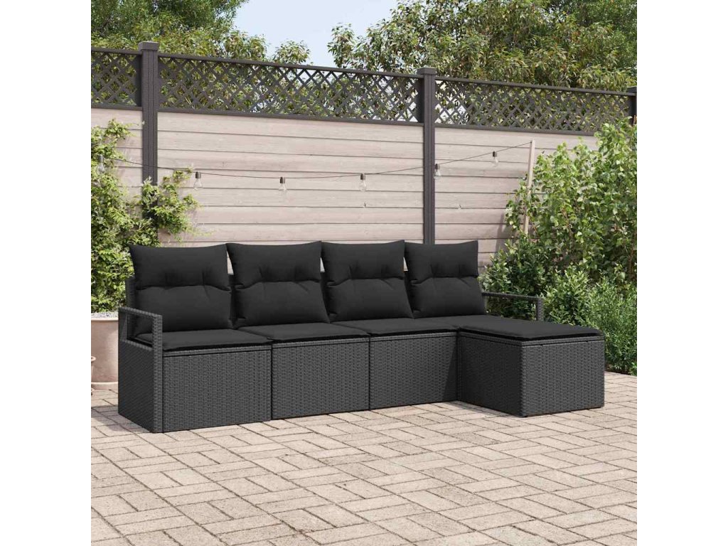 Sada pohoviek s vankúšom s úložiskom 5 pcs Čierna polyratan 3355012