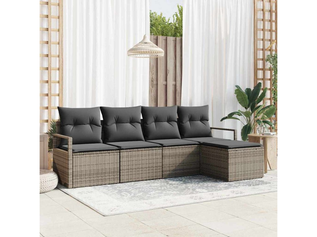 Sada pohoviek s vankúšom s úložiskom 5 pcs Sivá polyratan 3355008