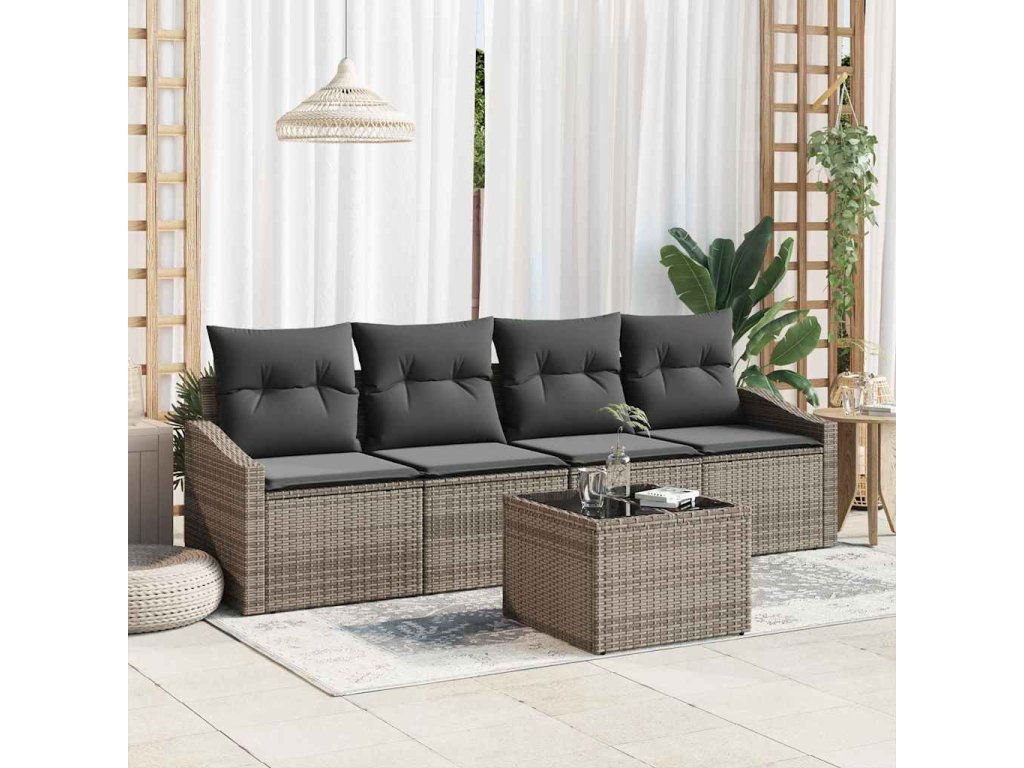 Sada pohoviek s vankúšom s úložiskom 5 pcs Sivá polyratan 3355258