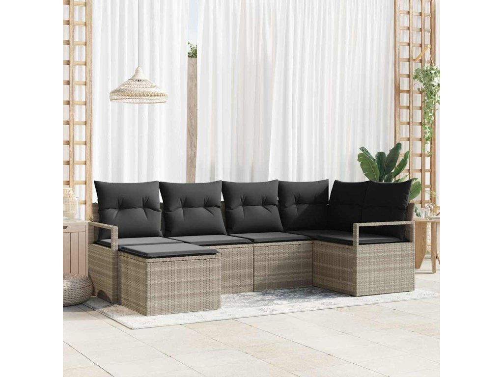 Sada pohoviek s vankúšom s úložiskom 6 pcs Svetlosivá polyratan 3355121