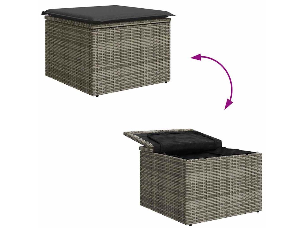 - Premyslené funkcie: Tento set je vybavený vodoodolným úložným priestorom, čo ponúka praktickosť a pohodlie. Jeho odolná konštrukcia odoláva UV lúčom a vlhkosti, čo z neho robí ideálneho spoločníka na dlhé roky na terase.
