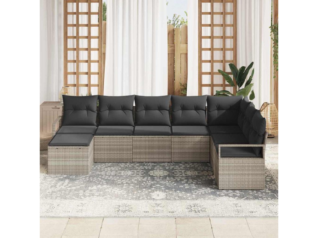 Sada pohoviek s vankúšom s úložiskom 8 pcs Svetlosivá polyratan 3355171
