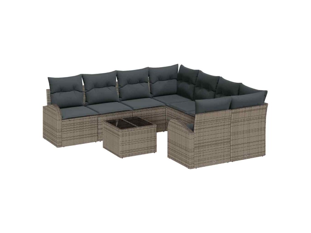 Sada pohoviek s vankúšom s úložiskom 9 pcs Sivá polyratan 3354648