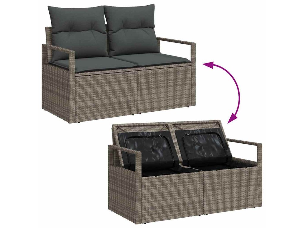 Sada pohoviek s vankúšom s úložiskom 9 pcs Sivá polyratan 3354988