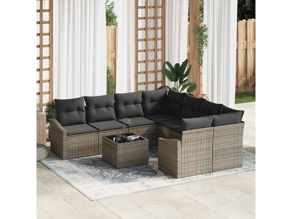 Sada pohoviek s vankúšom s úložiskom 9 pcs Sivá polyratan 3355328