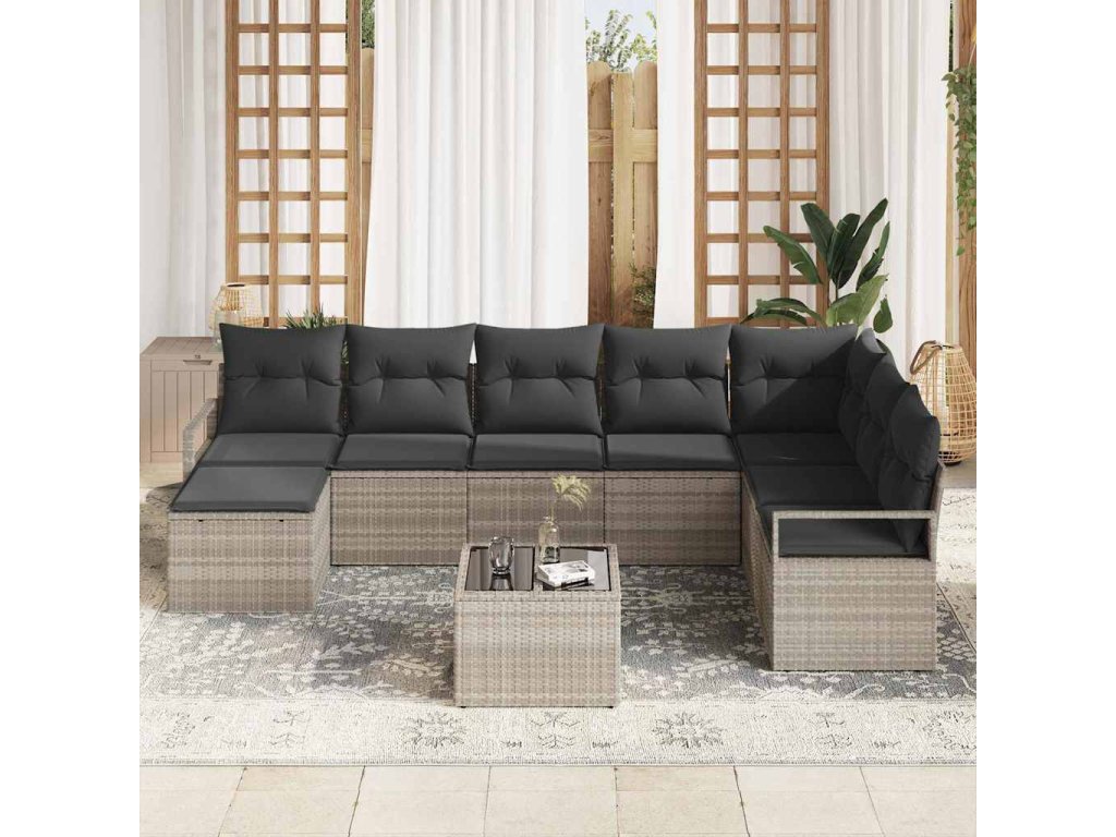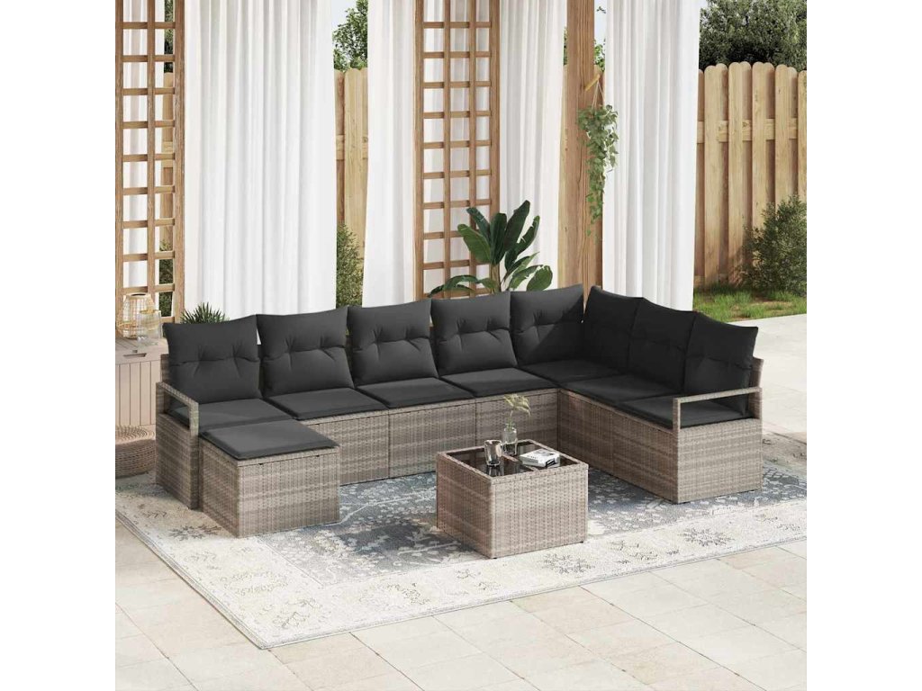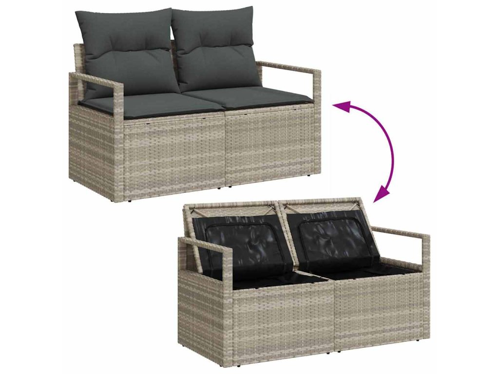 Sada pohoviek s vankúšom s úložiskom 9 pcs Svetlosivá polyratan 3355181