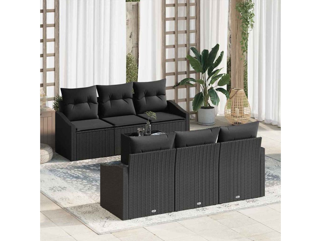 Sada pohoviek s vankúšom s vankúšom 7 pcs Čierna polyratan 3346613