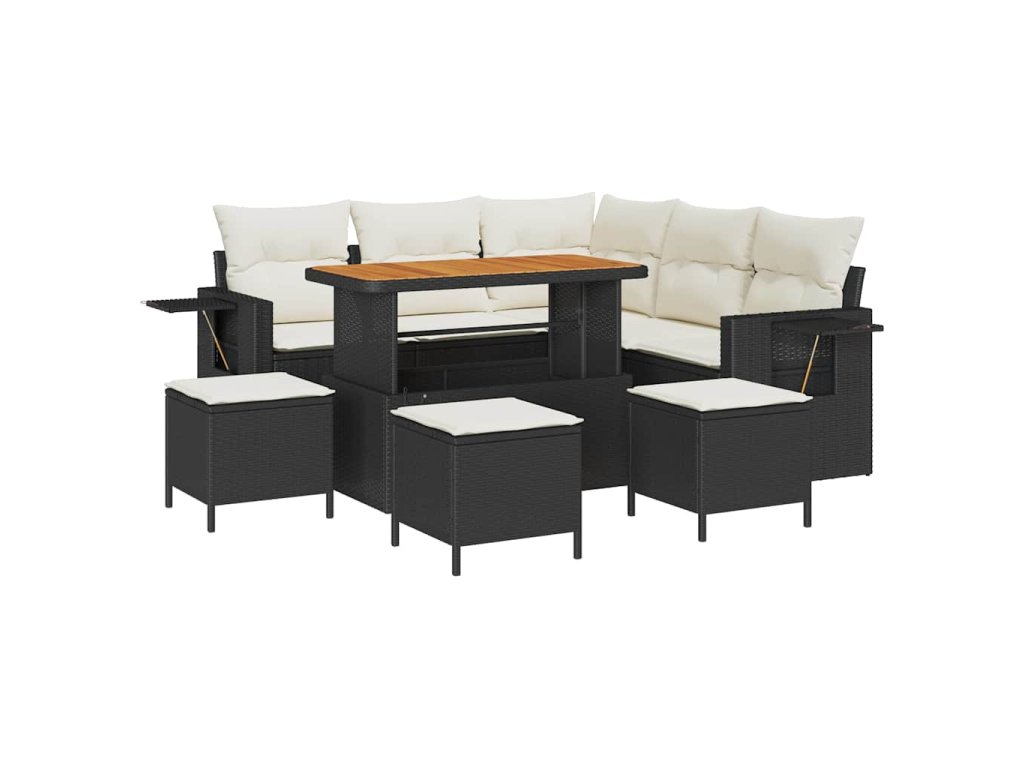 - Kvalitné materiály: Kombinácia poly ratanu a masívneho akáciového dreva zabezpečuje dokonalú odolnosť pre vonkajšie použitie, ponúkajú elegantný vzhľad a trvalú kvalitu. Každý kus prispieva k jej UV odolnosti, takže farby a štruktúra zostávajú krásne aj pri slnečnom žiarení.