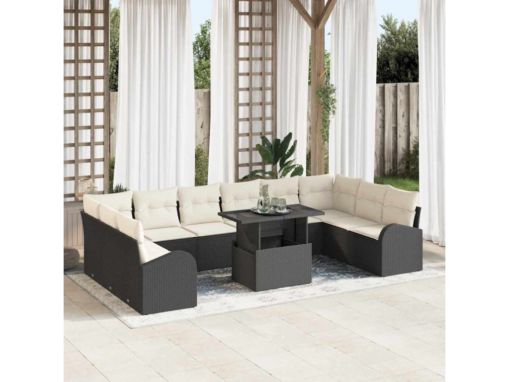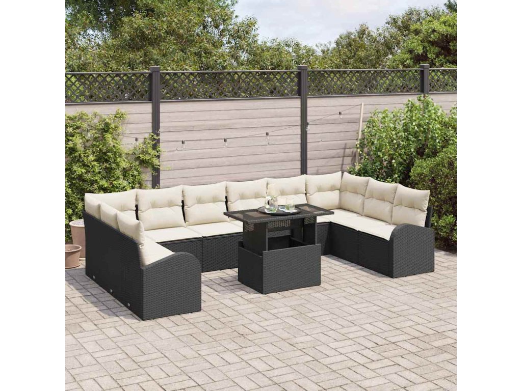 Súprava záhradných pohoviek 11 pcs Čierna a krémová polyratan 3348713
