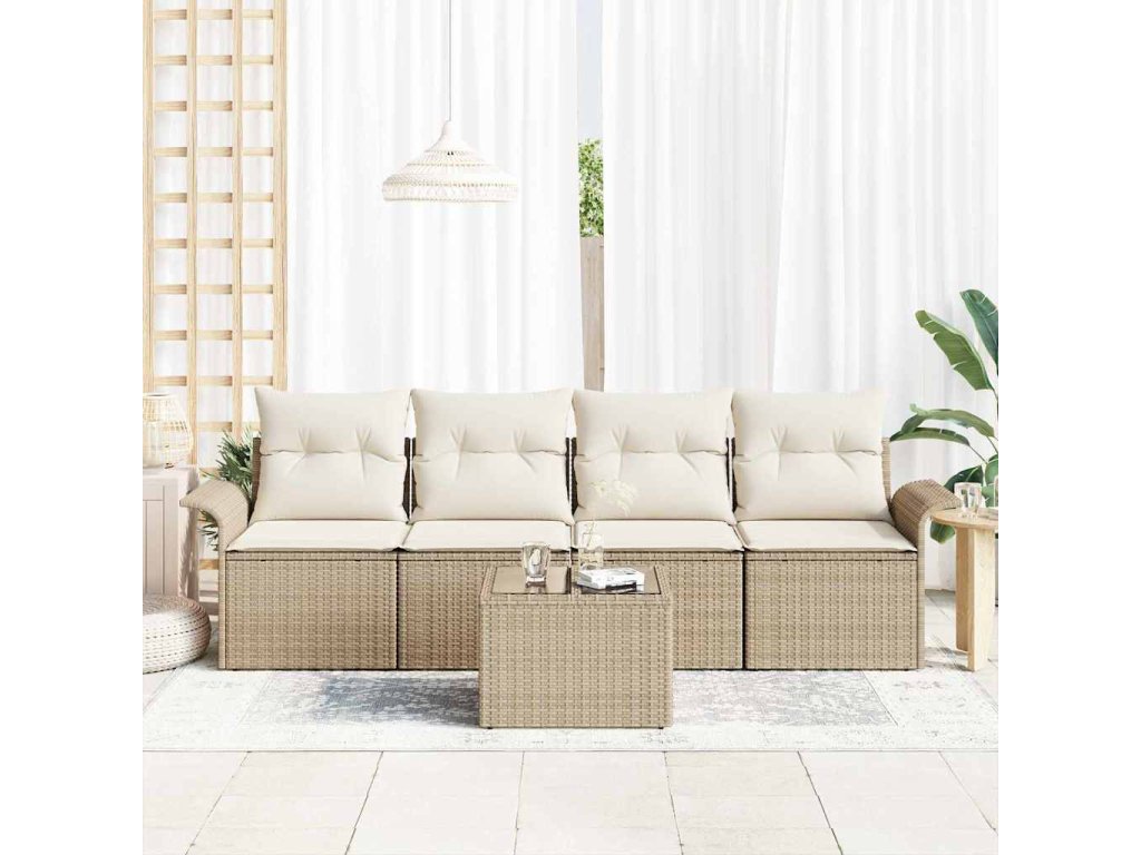 Súprava záhradných pohoviek 5 pcs Béžová a krémová polyratan 3353900