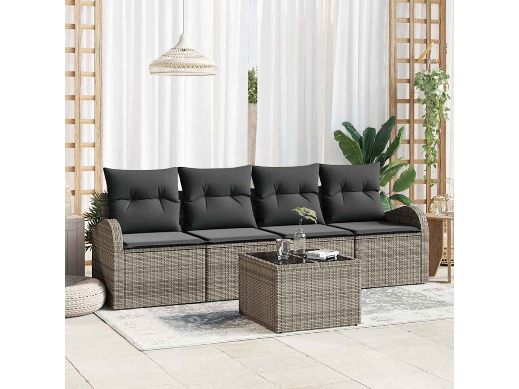Súprava záhradných pohoviek 5 pcs Sivá Polyratan a oceľ a sklo 3354578