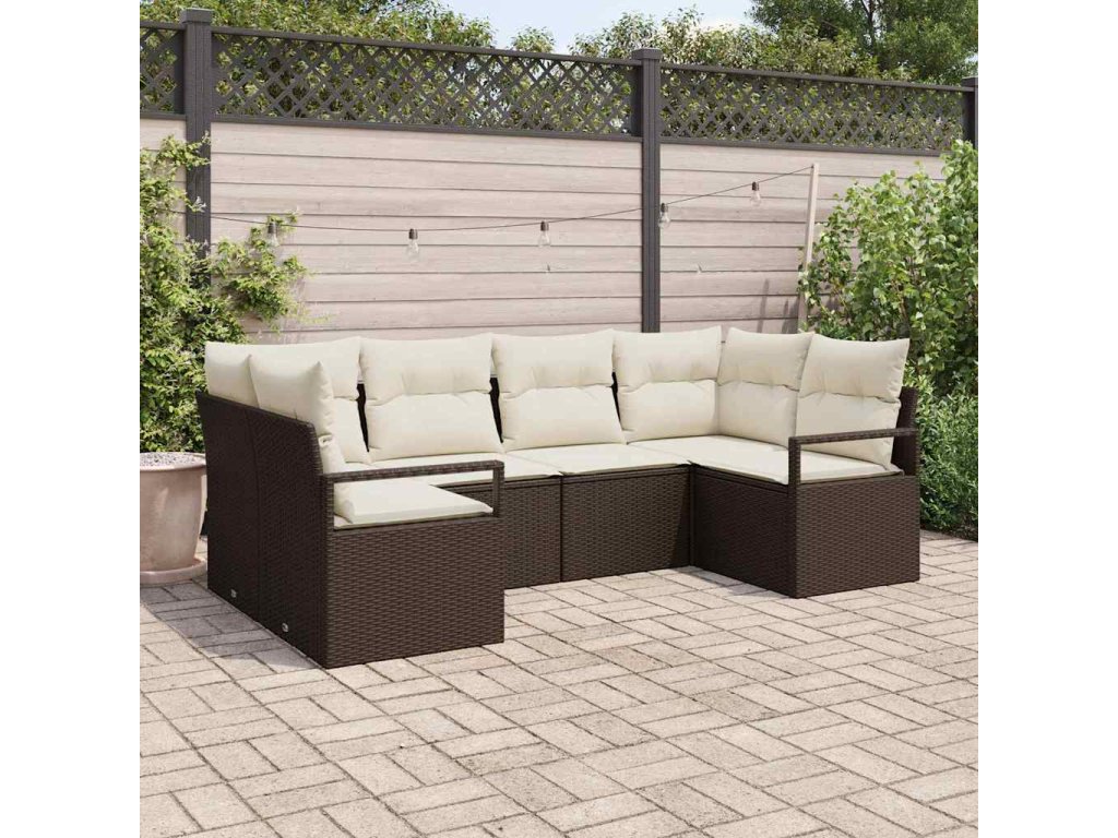 Súprava záhradných pohoviek 6 pcs Hnedá a biela polyratan 3355187