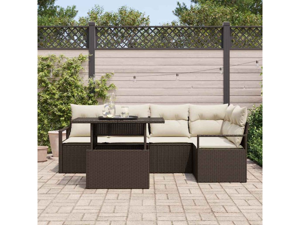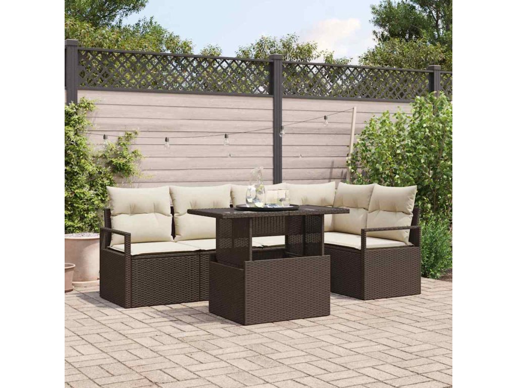 Súprava záhradných pohoviek 6 pcs Hnedá a krémová polyratan 3348824