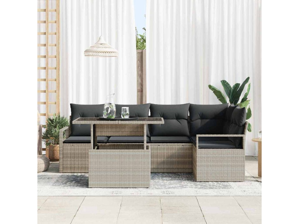 Súprava záhradných pohoviek 6 pcs Svetlosivá polyratan 3348828