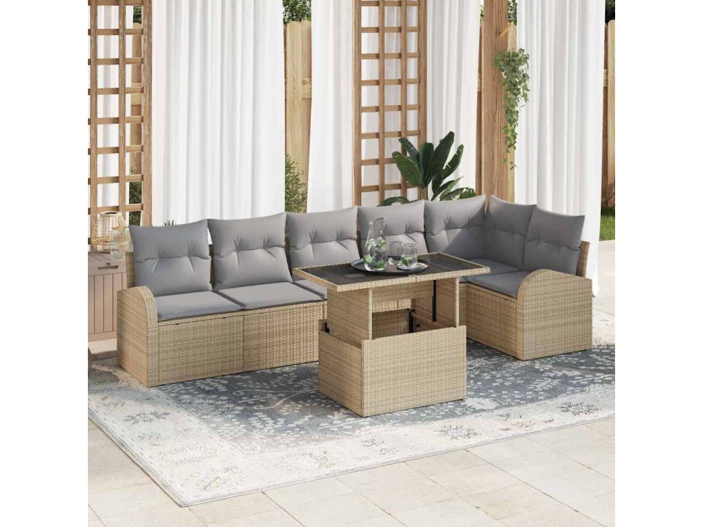 Súprava záhradných pohoviek 7 pcs béžová a svetlosivá polyratan 3348656