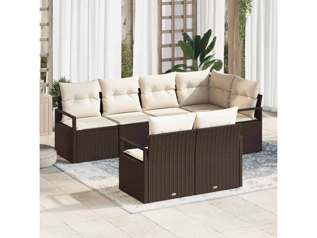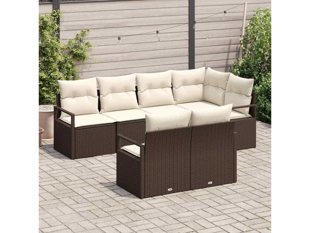 Súprava záhradných pohoviek 7 pcs Hnedá a biela polyratan 3355087