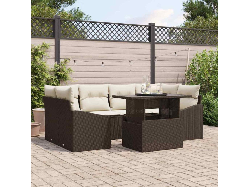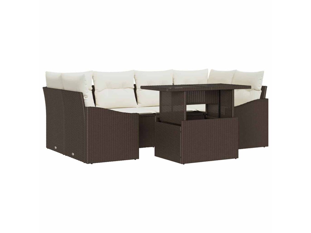 Súprava záhradných pohoviek 7 pcs Hnedá a smotanová polyratan 3348934