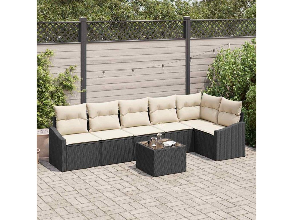 Súprava záhradných pohoviek 7 pcs Hnedá a smotanová polyratan 3355416