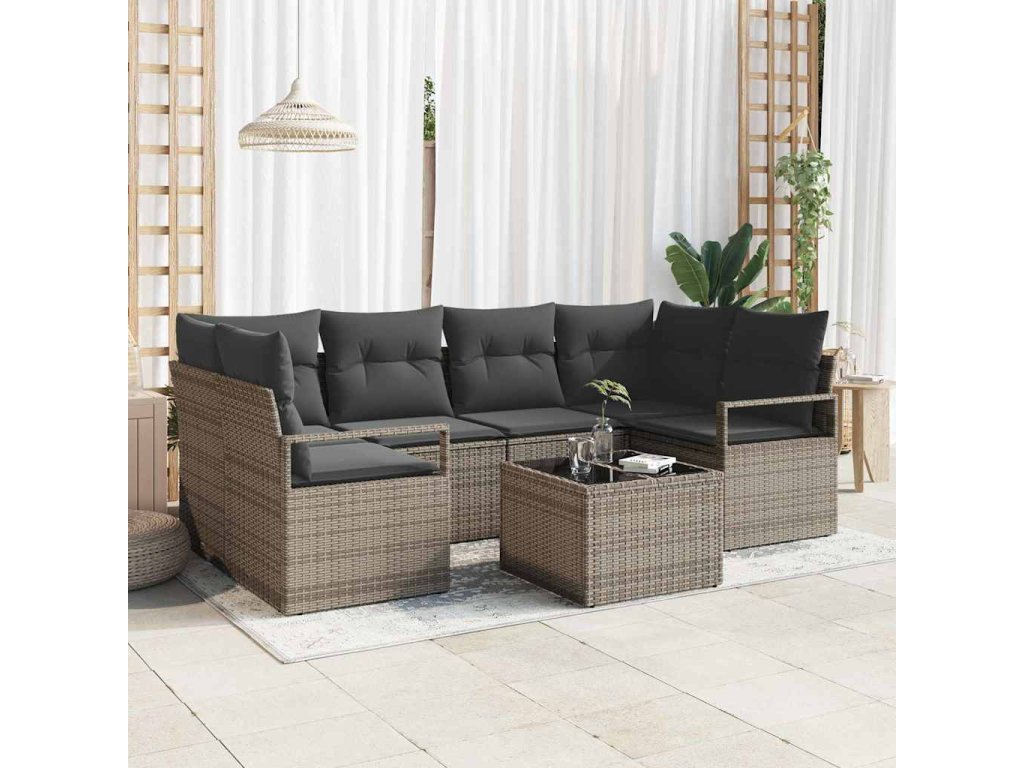 Súprava záhradných pohoviek 7 pcs Sivá Polyratan a oceľ a sklo 3354948