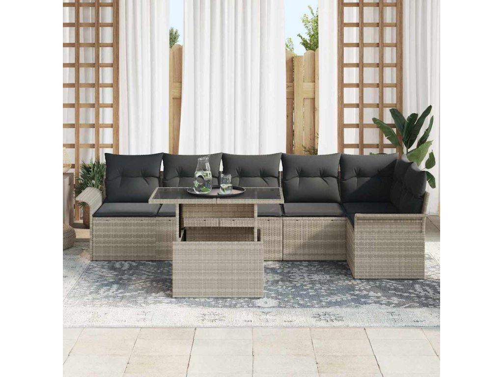 Súprava záhradných pohoviek 7 pcs Svetlosivá polyratan 3348298