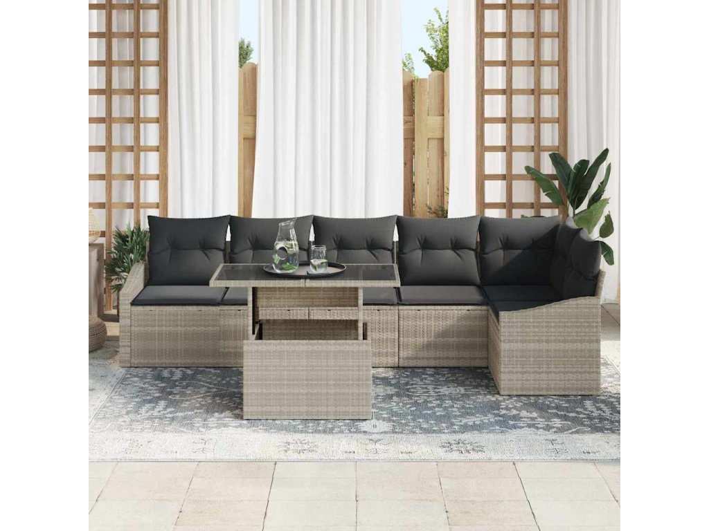 Súprava záhradných pohoviek 7 pcs Svetlosivá polyratan 3349018