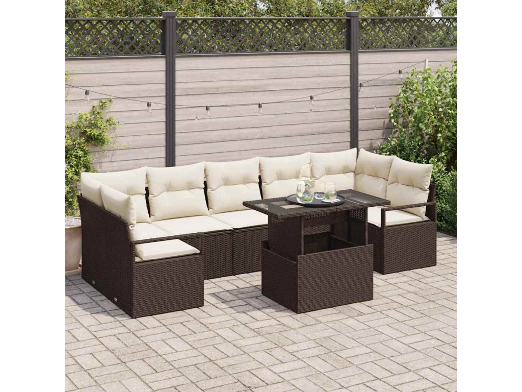 Súprava záhradných pohoviek 8 pcs Hnedá a krémová polyratan 3348774