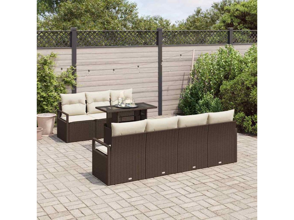 Súprava záhradných pohoviek 8 pcs Hnedá a smotanová polyratan 3348764