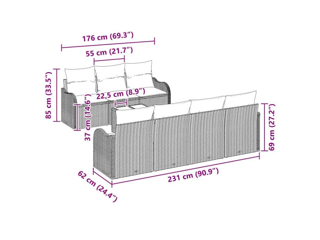 - Celkové rozmery: 231 x 62 x 85 cm (D x Š x V)