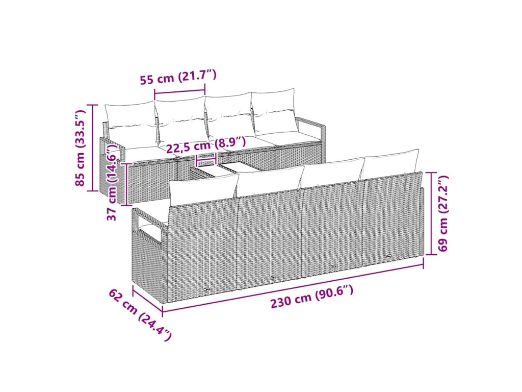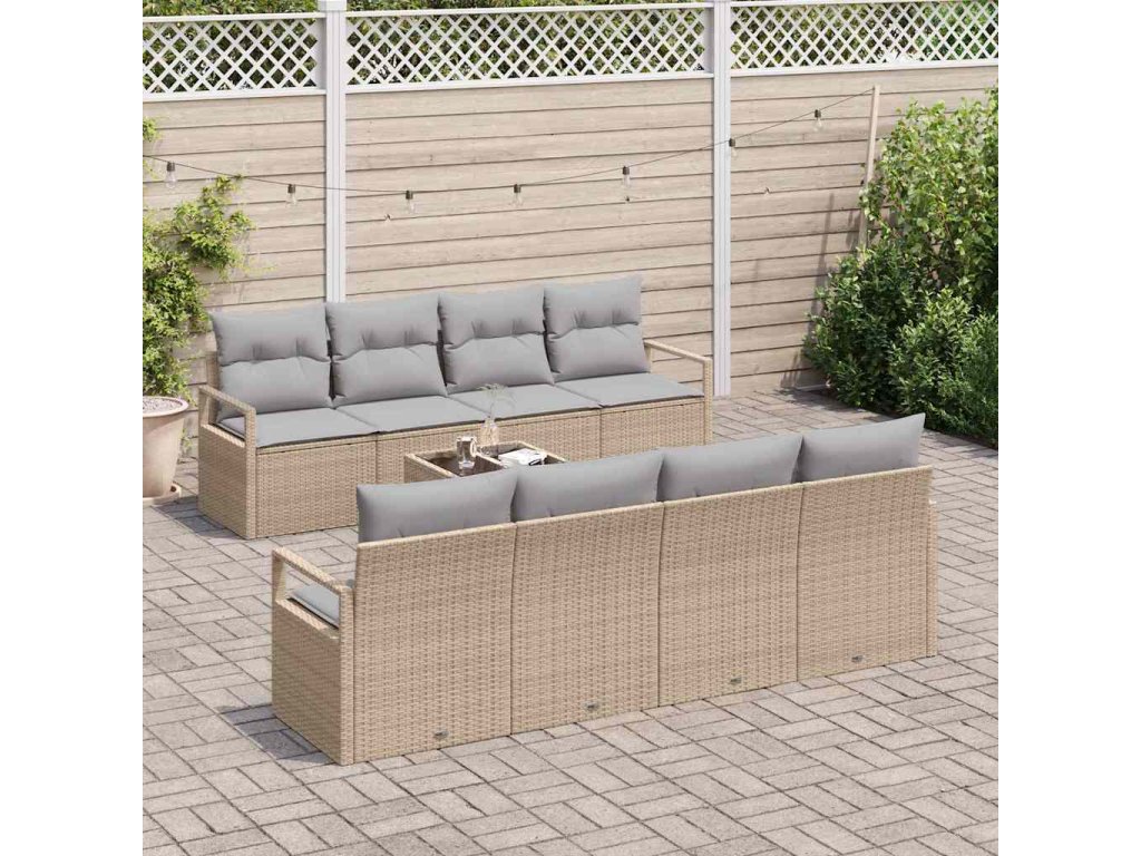 Súprava záhradných pohoviek 9 pcs Béžová a šedá polyratan 3354979