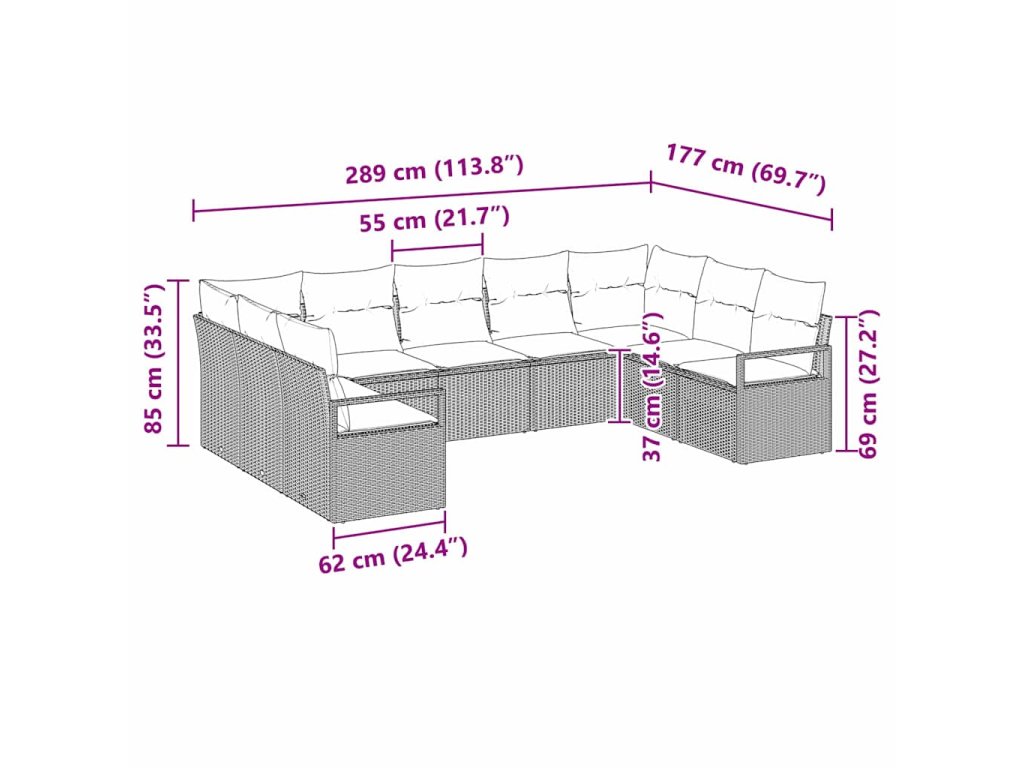 - 2 x Rohové sedadlo: 62 x 62 x 85 cm (DxŠxV)