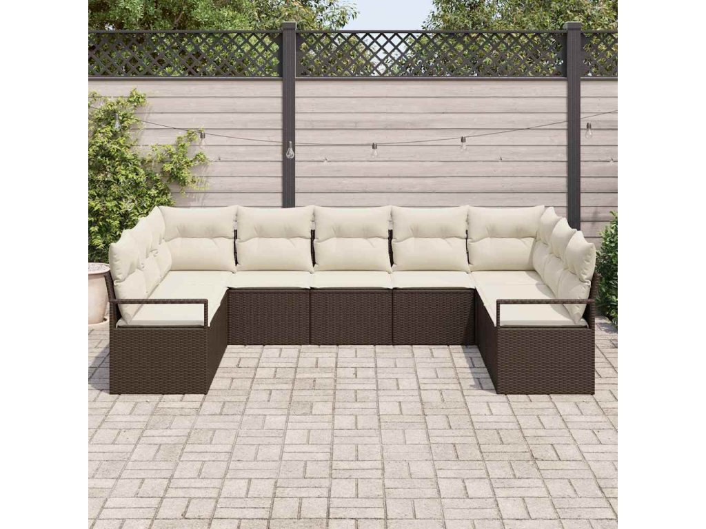 Súprava záhradných pohoviek 9 pcs Hnedá a biela polyratan 3355207