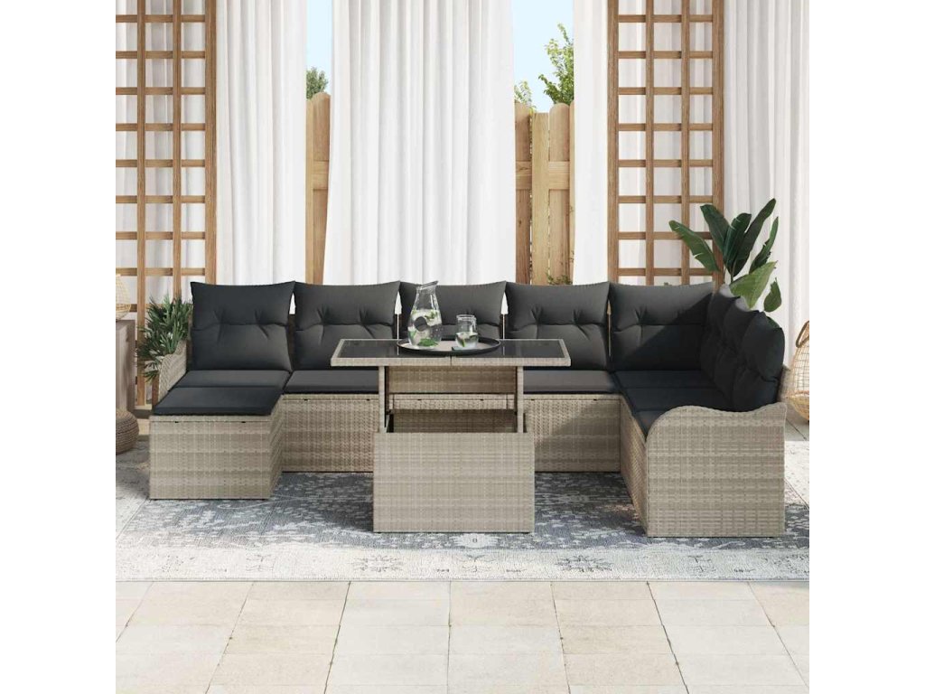 Súprava záhradných pohoviek 9 pcs Svetlosivá Poly ratan 3348518