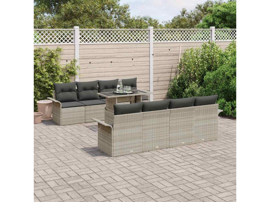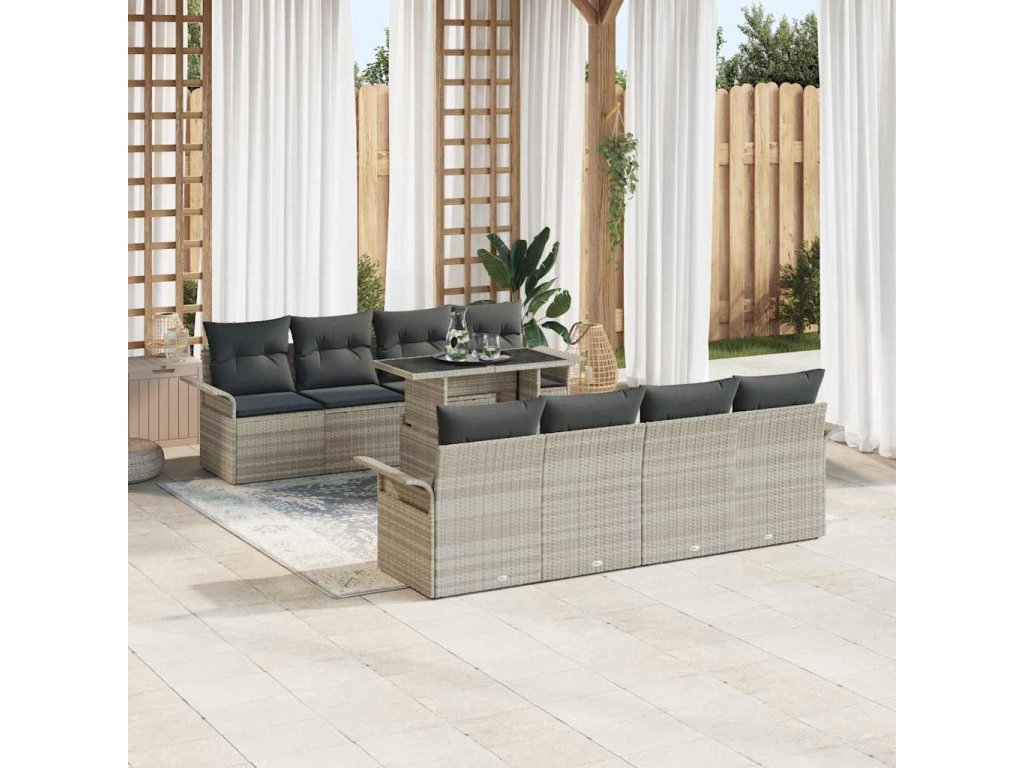 Súprava záhradných pohoviek 9 pcs Svetlosivá polyratan 3348248