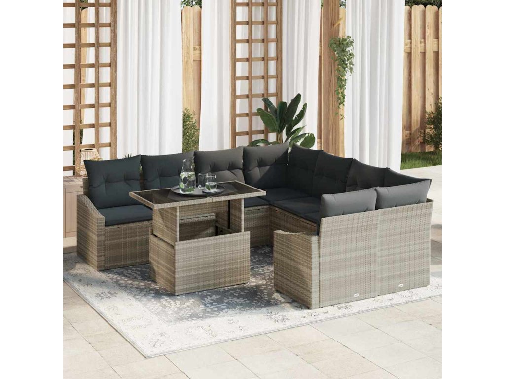 Súprava záhradných pohoviek 9 pcs Svetlosivá polyratan 3348978