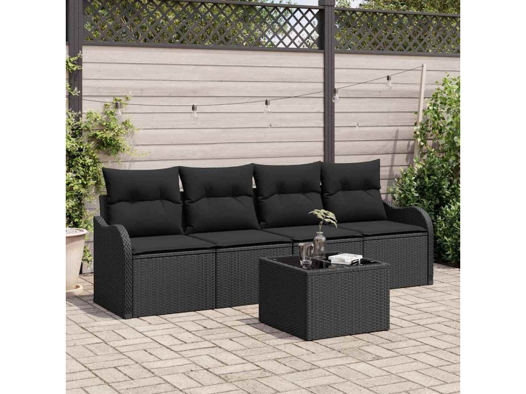 Súprava záhradných pohoviek s úložiskom 5 pcs Čierna polyratan 3354242