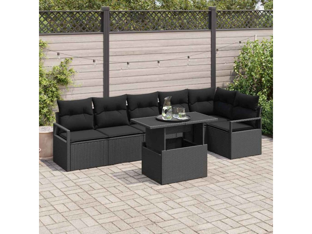 Súprava záhradných pohoviek s úložiskom 7 pcs Čierna polyratan 3348839