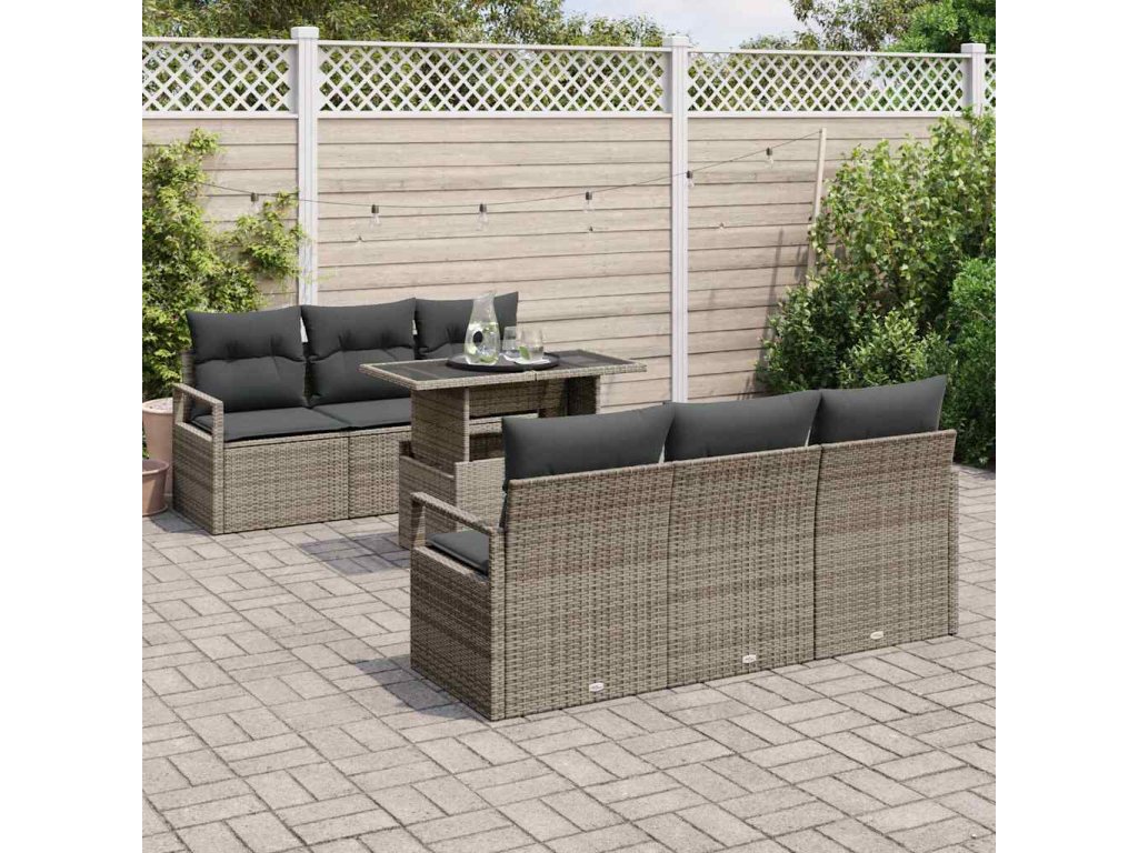 Súprava záhradných pohoviek s úložiskom 7 pcs Sivá polyratan 3348745