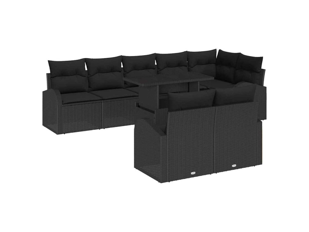 Súprava záhradných pohoviek s úložiskom 9 pcs Čierna polyratan 3348669