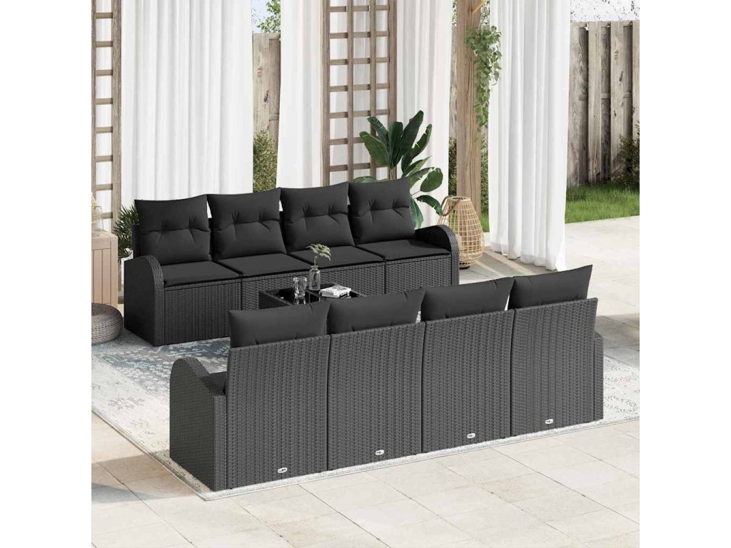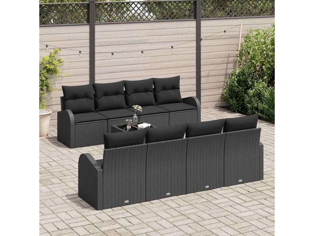 Súprava záhradných pohoviek s úložiskom 9 pcs Čierna polyratan 3354642