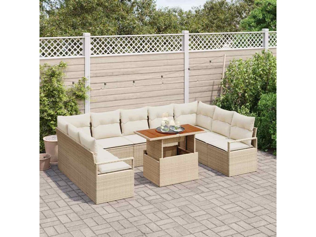 Súprava záhradných pohoviek s vankúšom 10 pcs Béžová a krémová 3349756