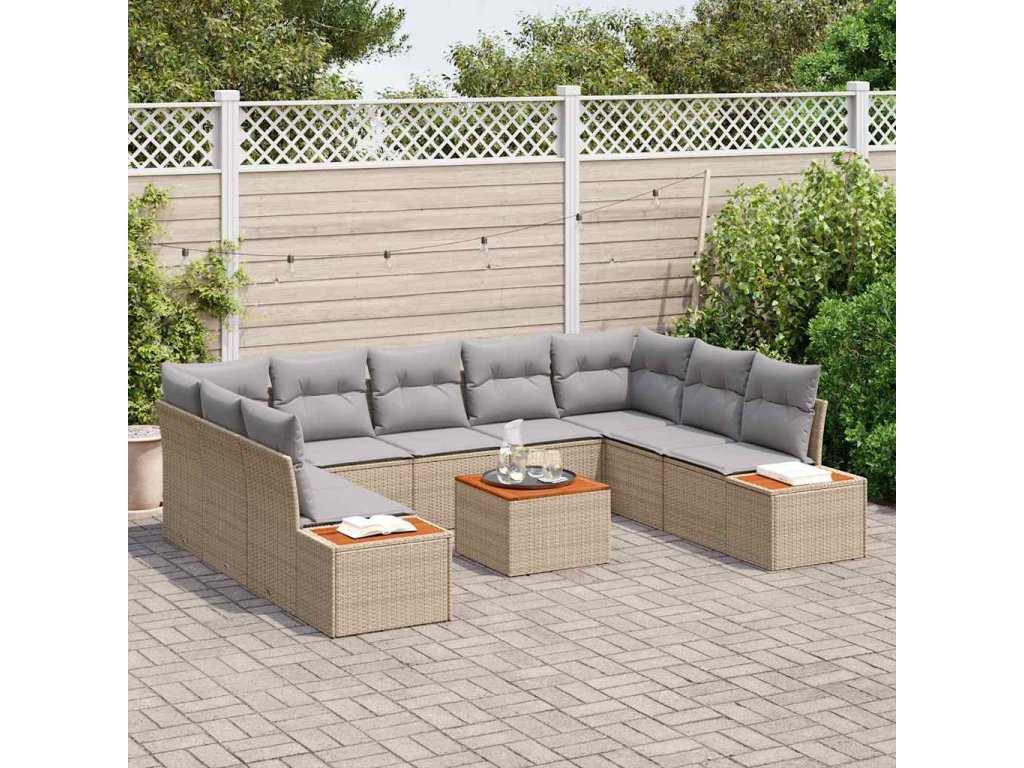 Súprava záhradných pohoviek s vankúšom 10 pcs Béžová Poly ratan 3348171