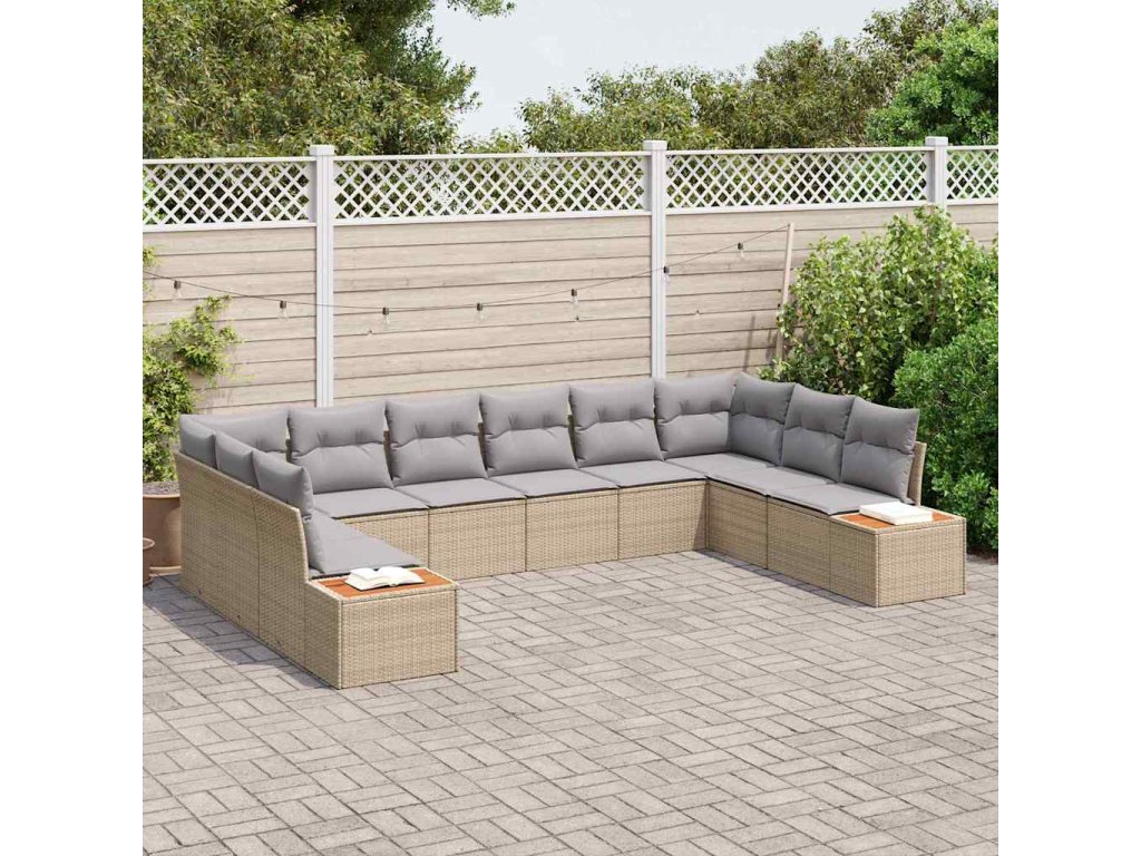 Súprava záhradných pohoviek s vankúšom 10 pcs Béžová Poly ratan 3348176